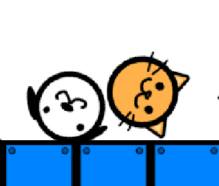 ねこは犬より物理的実態(RigidBody2d)のMassが高く、ねこのほうが重いので、犬とねこがあたると犬がぶっとぶようにしています。それぐらいです。