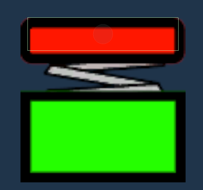 見づらいかもですが、赤いところにある四角の線がバネのあたり判定で、これが物理的な実体をもってます。これがすげー勢いで上に移動することで、上にいる犬も飛ぶという、シンプルな仕組み。