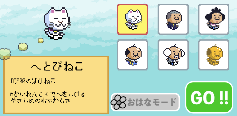 あまりにも難しいゲームになってしまったため、キャラクターを増やして、比較的簡単にクリアできる難易度のキャラを追加しました。